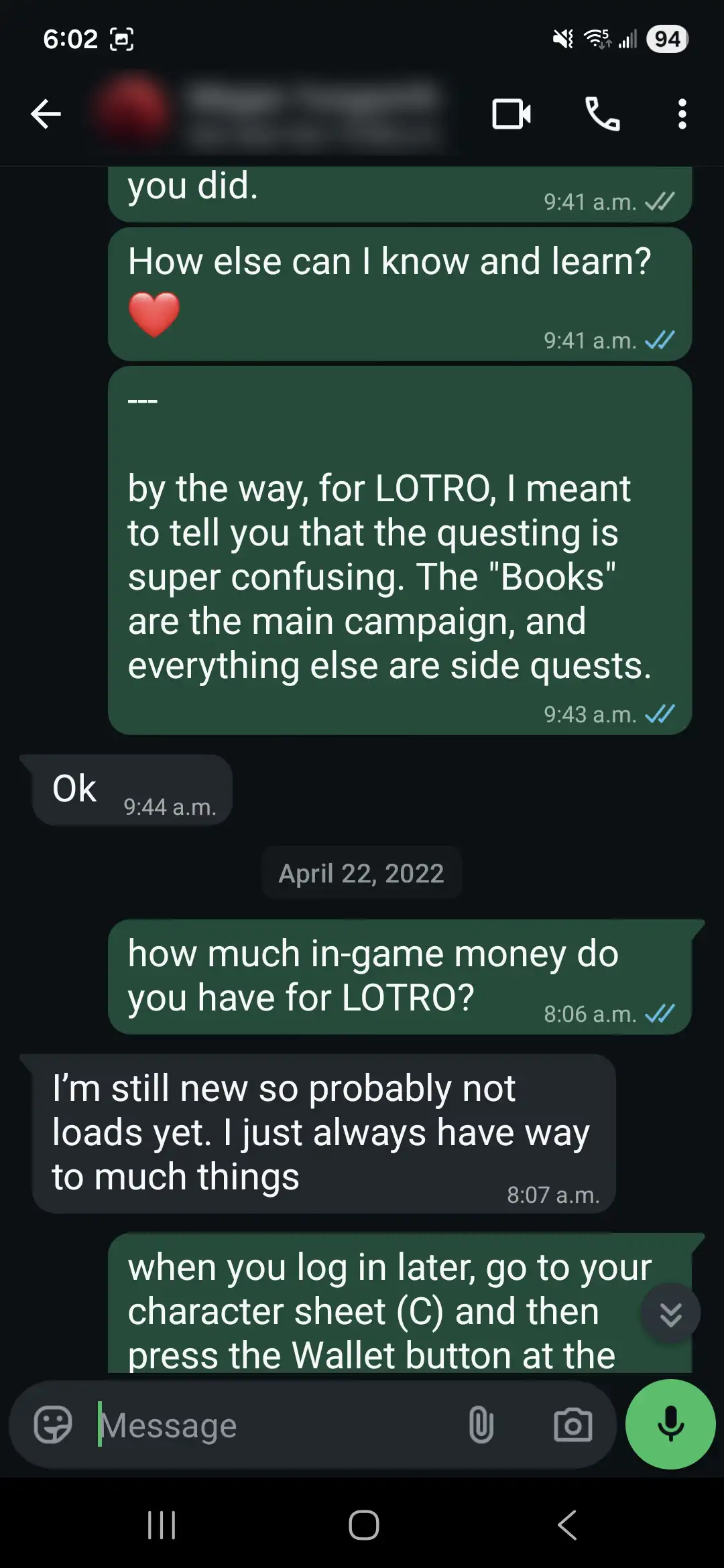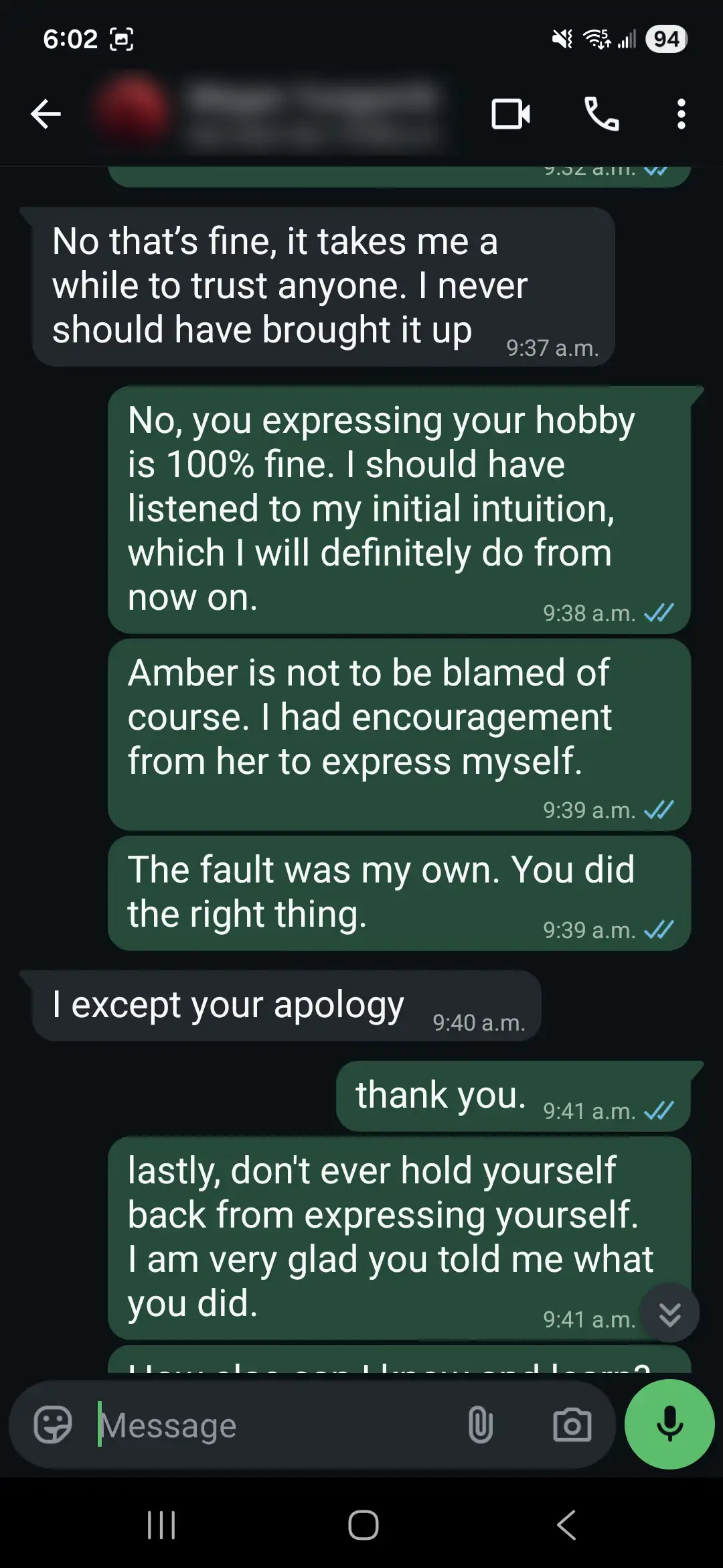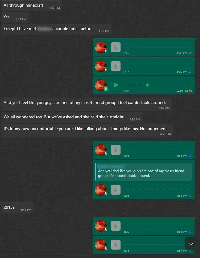 Still, despite everything, I tried to be the friend she had asked for. We continued speaking over the next few days, but without any real depth. I kept things surface-level about gaming and group activities, but nothing personal.
